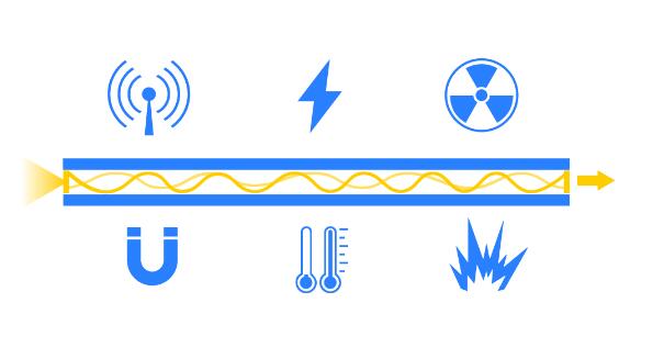 光纖傳感為電路和電子電路無法工作的地方提供了測(cè)量解決方案。光纖傳感器的工作完全基于光子,也就是通常所說的光。從物理學(xué)的角度看,光子沒有質(zhì)量,光子不干涉電子,光子只在特定條件下干涉其他光子。因此,即使在高電磁場(chǎng)、高磁場(chǎng)、高輻射場(chǎng)和極端溫度的環(huán)境中,光子的行為也是可以預(yù)測(cè)和控制的。
