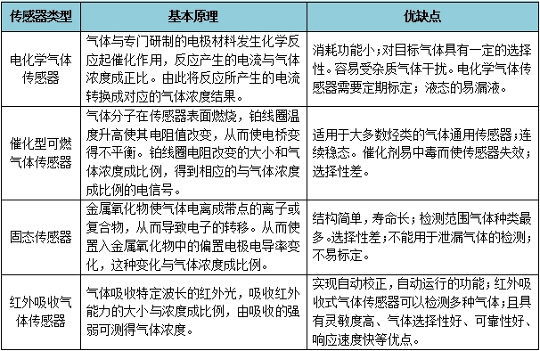 檢測甲烷氣體濃度的測量方法有:載體催化型、光干涉型、熱導型和紅外光譜吸收型,幾種檢測方法的特點見下表: