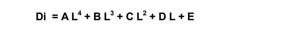 A,B,C,D,E =校準數(shù)據(jù)表中給出的校準因子