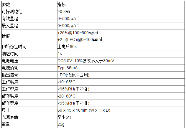 韓國Samyoung PM2.5 PM1.0傳感器GPSM系列參數:
