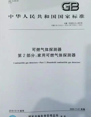 根據(jù)國家標準委員會2019年10月18日關(guān)于公開2019年第? 12號中國國家標準公告中國家標準全文的通知,GB15322.1-2019《可燃氣體探測器第? 1部分:工業(yè)及商業(yè)用途點型可燃氣體探測器》、GB15322.2-2019《可燃氣體探測器第2部分:家用可燃氣體探測器》、GB15322.3-2019《可燃氣體探測器第3部分:工業(yè)及商業(yè)用途便攜式可燃氣體探測器》、GB15322.4-2019《可燃氣體探測器第4部分:工業(yè)及商業(yè)用途線型光束可燃氣體探測器》四項國家標準正式發(fā)布,實施日期為2020年11月1日。