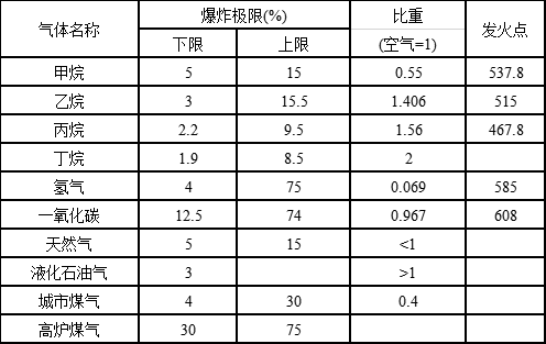 可燃?xì)怏w種類有很多,如甲烷(CH4)、乙烷(C2H6)、丙烷(C3H8)、丁烷(C4H10)、氫氣(H2)、一氧化碳(CO)、天然氣、液化石油氣、城市煤氣、高爐煤氣等。