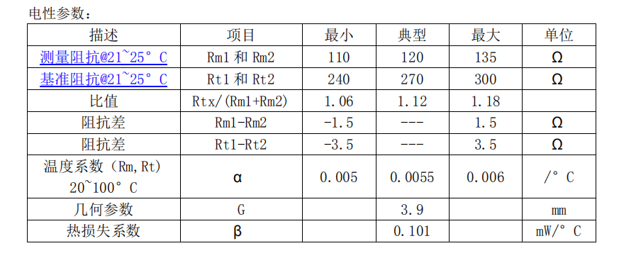 熱導式氣體傳感器 -MTCS2601參數(shù):