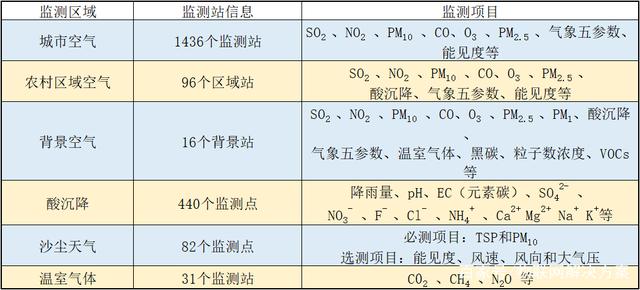 我國環(huán)境空氣質量監(jiān)測網(wǎng)覆蓋了國家、省、市、縣四個層面。根據(jù)地理位置和氣候的不同,國家環(huán)境空氣質量監(jiān)測網(wǎng)包含了區(qū)域環(huán)境空氣質量監(jiān)測、城市環(huán)境空氣質量監(jiān)測、背景環(huán)境空氣質量監(jiān)測、試點城市溫室氣體監(jiān)測、酸雨監(jiān)測、沙塵影響空氣質量監(jiān)測、大氣顆粒物組分/光化學監(jiān)測等。監(jiān)測項目主要有SO2、NOx、CO、CO2、CH4、O3、PM10、PM2.5、PM1、VOCs(揮發(fā)性有機物)、氣象五參數(shù)、能見度、酸沉降(包含降雨量、pH、EC、硫酸根離子、硝酸根離子、氟離子、氯離子、鈣離子、鎂離子、鈉離子、鉀離子等)和沙塵天氣等。