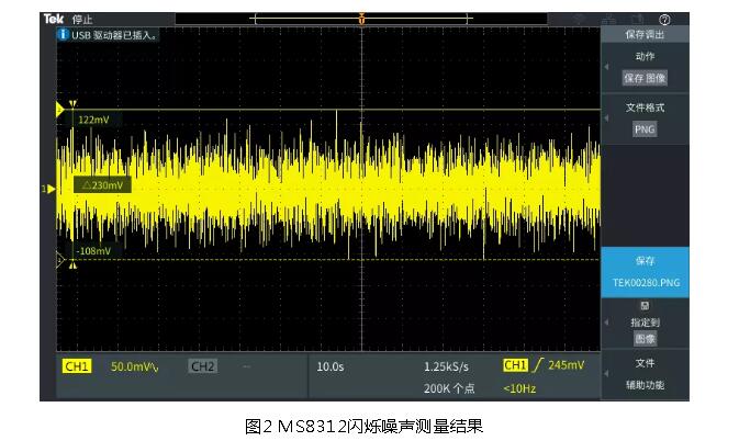 以MS8312為例,測(cè)量1/f噪聲時(shí),理念就是先將整體噪聲放大,然后再用濾波器將小于0.1Hz、大于10Hz的噪聲進(jìn)行衰減。下圖就是MS8312測(cè)量到的閃爍噪聲:
