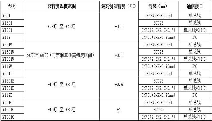 M601/M1601/MTS01/M117高精度數(shù)字溫度傳感芯片的特點(diǎn):