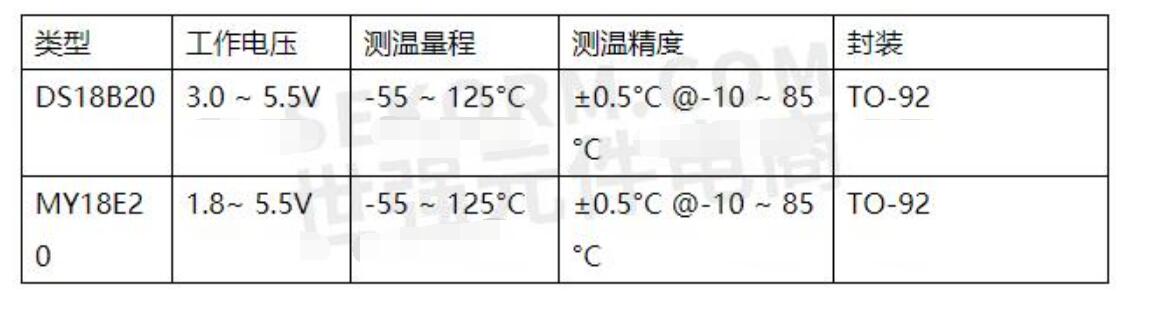 從上表可以看出,MY18E20替換DS18B20完全滿足技術(shù)要求,另外,溫度傳感芯片 - MY18E20還有以下特色功能: