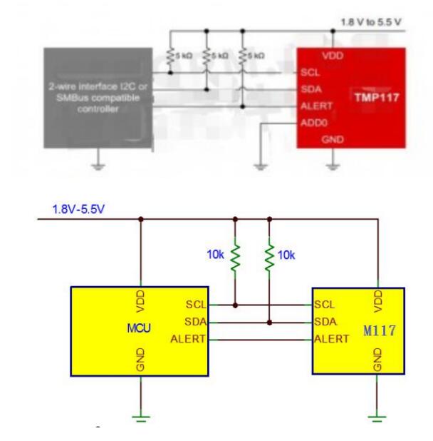 從上述典型硬件電路可以看到,M117溫度傳感芯片支持數(shù)字 I2C 通信接口、測溫數(shù)據(jù)內(nèi)存訪問、功能配置等均可通過數(shù)字協(xié)議指令實現(xiàn),電路設(shè)計更加簡單,并且還可以節(jié)省一些MCU的硬件資源。所以,對于便攜式的可穿戴產(chǎn)品,M117在功能上完全可以滿足替代要求,并且成本更有優(yōu)勢。