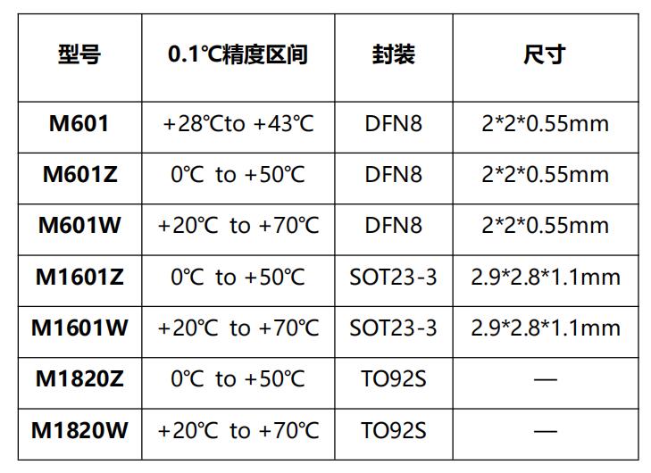 數(shù)字高精度溫度傳感芯片 - M601、M1601、M1820系列是工采網(wǎng)代理的國(guó)產(chǎn)品牌MYSENTECH推出的高精度數(shù)字模擬混合信號(hào)溫度傳感芯片。M601為體溫芯片,高測(cè)溫精度為+28°C到+43°C范圍±0.1°C;M601Z、M1601Z、M1820Z高測(cè)溫精度為0°C到+50°C范圍±0.1°C;M601W、M1601W、M1820W高測(cè)溫精度為+20°C到+70°C范圍0.1°C精度;用戶(hù)無(wú)需進(jìn)行校準(zhǔn)。溫度芯片感溫原理基于CMOS半導(dǎo)體PN節(jié)溫度與帶隙電壓的特性關(guān)系,經(jīng)過(guò)小信號(hào)放大、模數(shù)轉(zhuǎn)換、數(shù)字校準(zhǔn)補(bǔ)償后,數(shù)字總線輸出,具有精度高、一致性好、測(cè)溫快、功耗低、可編程配置靈活、壽命長(zhǎng)等優(yōu)點(diǎn)。溫度芯片內(nèi)置16-bit ADC,分辨率0.004°C,具有-70°C到+150°的超寬工作范圍。芯片有唯一的64位ID序列號(hào),在出廠前經(jīng)過(guò)100%的測(cè)試校準(zhǔn),根據(jù)溫度誤差特性進(jìn)行校準(zhǔn)系數(shù)的擬合,芯片內(nèi)部自動(dòng)進(jìn)行補(bǔ)償計(jì)算。為了簡(jiǎn)化系統(tǒng)應(yīng)用,芯片的ID搜索、測(cè)溫?cái)?shù)據(jù)內(nèi)存訪問(wèn)、功能配置等均基于數(shù)字單總線協(xié)議指令,上位機(jī)微處理器只需要一個(gè)GPIO端口便可進(jìn)行讀寫(xiě)訪問(wèn)。單總線通信接口通過(guò)共用一根數(shù)據(jù)總線來(lái)實(shí)現(xiàn)多節(jié)點(diǎn)傳感采集與組網(wǎng)的低成本方案,傳輸距離遠(yuǎn)、支持節(jié)點(diǎn)數(shù)多,便于空間分布式傳感組網(wǎng)??芍С?00個(gè)節(jié)點(diǎn)100至500米長(zhǎng)的測(cè)溫節(jié)點(diǎn)串聯(lián)組網(wǎng)。芯片內(nèi)置非易失性E2PROM存儲(chǔ)單元,用于保存芯片ID號(hào)、高低溫報(bào)警閾值、溫度校準(zhǔn)修正值以及用戶(hù)自定義信息,如傳感器節(jié)點(diǎn)編號(hào)、位置信息等。M601系列(M601、M601Z、M601W)另有ALERT報(bào)警指示引腳,便于用戶(hù)擴(kuò)展硬件報(bào)警應(yīng)用。