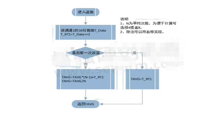 其次,軟件設計方面,每組溫度數(shù)據(jù)占2個字節(jié),高14bit是溫度數(shù)值,低位B1是奇偶校驗位,低位B0位開路標志位。溫度平均的算法如下: