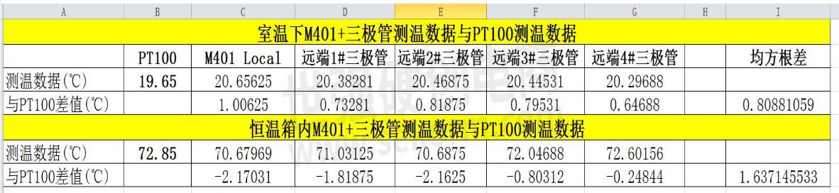 再次,工程師在設計時,考慮測量精度的因素之一是三極管的PN結的溫度與M401測得溫度的誤差,下圖是測試的數(shù)據(jù)可供參考:誤差在2度左右,適用于大部分的場合對多點測溫的精度要求。