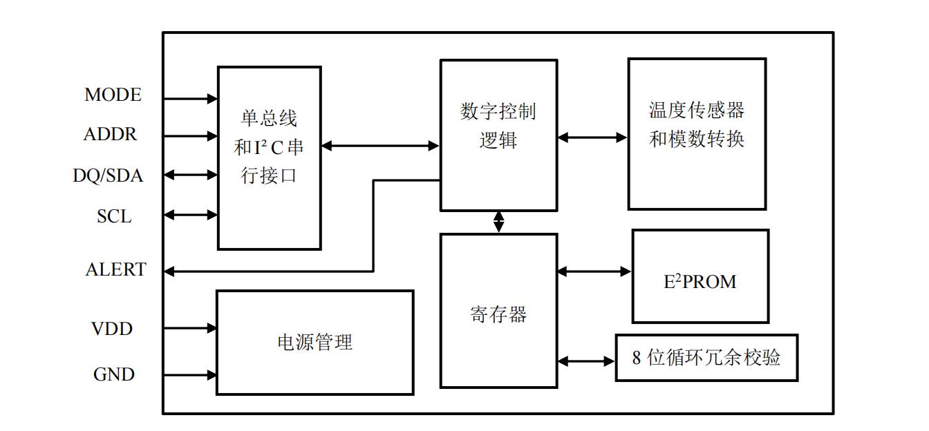 溫度芯片感溫原理基于CMOS 半導(dǎo)體PN 節(jié)溫度與帶隙電壓的特性關(guān)系,經(jīng)過小信號放大、模數(shù)轉(zhuǎn)換、數(shù)字校準(zhǔn)補(bǔ)償后,數(shù)字總線輸出,具有精度高、一致性好、測溫快、功耗低、可編程配置靈活、壽命長等優(yōu)點(diǎn)。