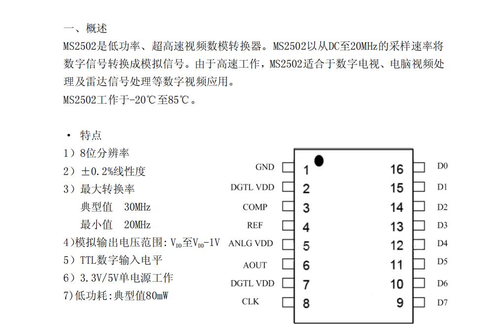 高速數(shù)模轉(zhuǎn)換芯片 -?MS2502工作于-20°C至85°C。