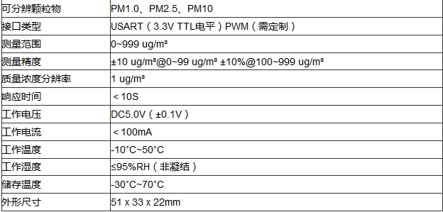 日本figaro 激光顆粒物傳感器 PM2.5傳感器TF-LP01參數(shù):