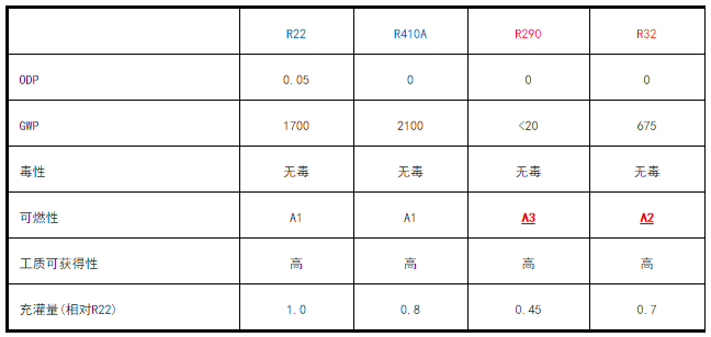1、R32制冷劑全球變暖系數(shù)是R410A的1/3,較傳統(tǒng)的R410A、R22制冷劑環(huán)保,但R32具有一定的可燃性。