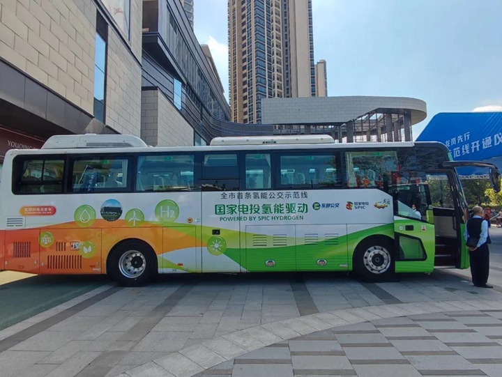 這款氫能公交車總長11米,可載客46人,兩側(cè)車身以綠色、低碳為環(huán)保底色,比普通公交車更“清新靚麗”。