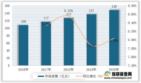 根據(jù)觀研報告網(wǎng)發(fā)布的《2021年中國智能傳感器市場分析報告-行業(yè)供需現(xiàn)狀與發(fā)展商機(jī)研究》顯示。2013?年起,智能傳感器行業(yè)扶持政策陸續(xù)出臺,重點為使傳感器及智能儀器儀表實現(xiàn)微型化、數(shù)字化、模塊化、網(wǎng)絡(luò)化;伴隨物聯(lián)網(wǎng)和智能制造的興起,智能傳感器得到了廣泛地關(guān)注。根據(jù)數(shù)據(jù)顯示,2019年我國智能傳感器行業(yè)市場規(guī)模達(dá)137億元,2020年我國智能傳感器行業(yè)市場規(guī)模達(dá)148億元,同比增長8.03%。
