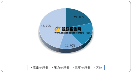 根據(jù)傳感器類型不同,具體包括溫度和濕度傳感器、壓力傳感器、圖像傳感器、光傳感器、位置傳感器、重力傳感器等。流量傳感器、壓力傳感器、溫度傳感器占據(jù)zui大的市場份額。