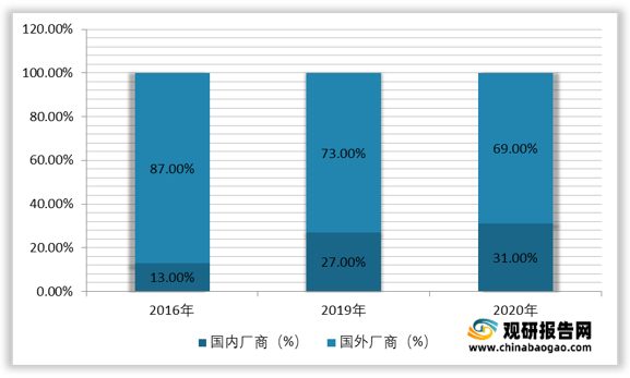 2016-2020年我國智能傳感器國產(chǎn)化率情況