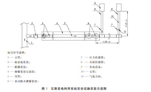 設(shè)計規(guī)范中提到了瓦斯發(fā)電利用系統(tǒng)、地面瓦斯排空系統(tǒng)、采空區(qū)抽采低濃度瓦斯系統(tǒng)、低濃度瓦斯混配利用系統(tǒng)安全設(shè)施的安裝要求。
