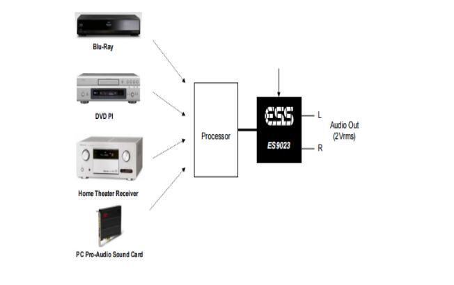 ES9023內部使用專利技術的超線流(Hyperstream)架構和時域抖動消除技術,使之可以實現(xiàn)無抖動錄音級別的音質,動態(tài)范圍達到了112dB。
