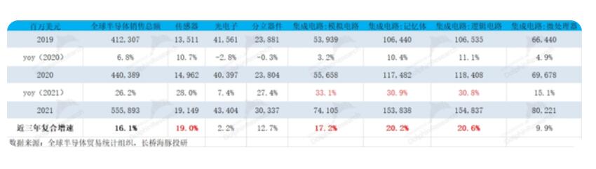 在對半導(dǎo)體分類有所了解后,再來看各類芯片的近年來的變化情況。
