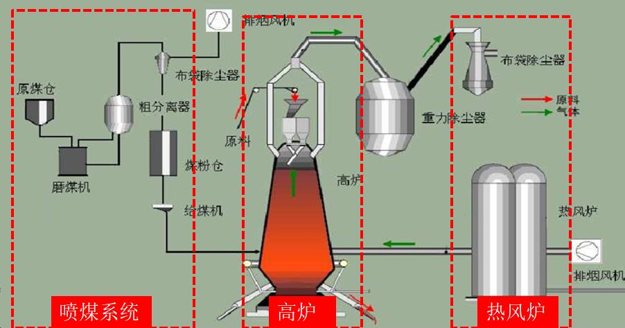 鋼鐵廠在進(jìn)行煉鐵的工藝過程中,煤是主要的供能原料,為提高煤的利用效率鋼鐵廠普遍采用噴煤的方式進(jìn)行燃燒供能。噴煤系統(tǒng)的核心設(shè)備是磨煤機(jī),磨煤機(jī)在制粉過程中可能會因?yàn)榛鸹ɑ蜃匀紝?dǎo)致磨煤機(jī)的自燃或爆炸,嚴(yán)重影響整個(gè)煉鐵系統(tǒng)的正常運(yùn)轉(zhuǎn)和安全。