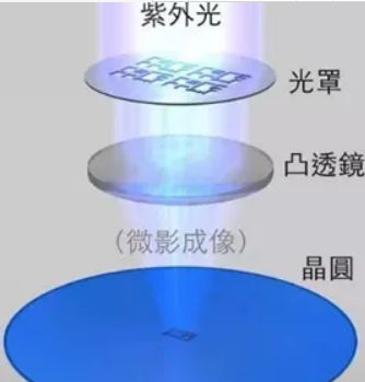 紫外光刻的原理是在切割好的晶圓(通常是多晶硅)上覆蓋一層高感光的光刻膠,然后通過掩膜版用光(通常是紫外光、深紫外光、極紫外光)照射晶圓表面。紫外光照射的光刻膠會(huì)發(fā)生反應(yīng)。之后,用特定的溶劑清洗照射/未照射的光刻膠,并將電路圖從掩模轉(zhuǎn)移到晶片上。簡單來說就是用紫外線將多層電路圖刻在晶圓上,這個(gè)過程中必須使用光刻機(jī)。