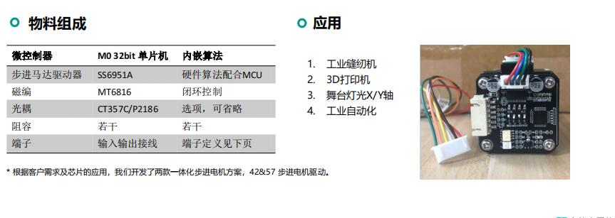 優(yōu)秀的軟件算法配合磁編做閉環(huán)控制,高速,低噪聲,高穩(wěn)速精度,變曲線轉(zhuǎn)速扭矩,使得此方案能適用于多種對(duì)性能有要求的場(chǎng)合。同時(shí),結(jié)合步進(jìn)電機(jī)專(zhuān)用芯片的硬件算法,對(duì)MCU的資源不需要太高,M0足以滿足,極大提升了產(chǎn)品的性?xún)r(jià)比。