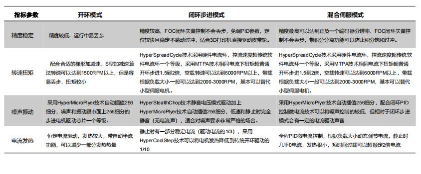 一體化閉環(huán)驅(qū)動(dòng)步進(jìn)電機(jī)共三個(gè)工作模式-開(kāi)環(huán)模式、閉環(huán)步進(jìn)模式及混合伺服模式。