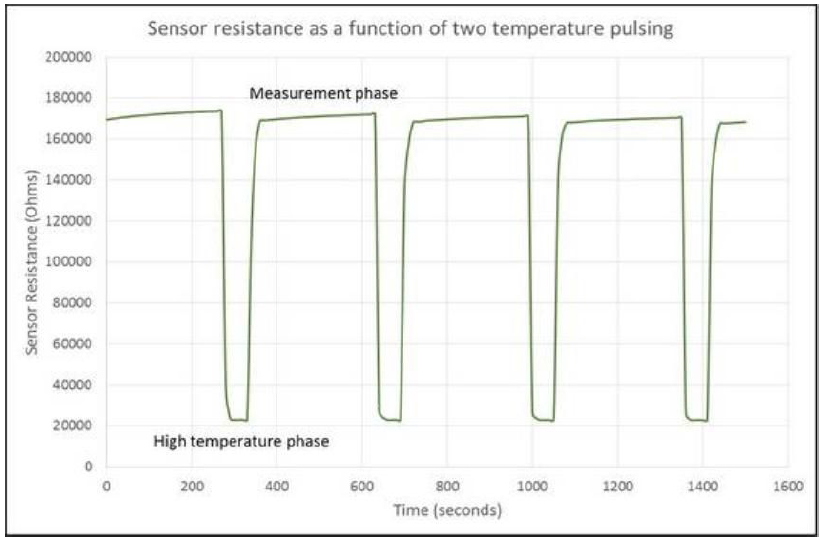 工作溫度對傳感器性能有顯著影響。這甚至在使用我們建議的雙溫脈沖方法時(shí)更加如此。當(dāng)傳感
