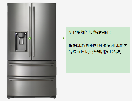 其次是濕度傳感器,濕度傳感器在冰箱內(nèi)的作用主要體現(xiàn)在加熱器控制防止冷凝、制冰機(jī)的除霜風(fēng)機(jī)、冰箱濕度控制、保鮮抽屜的濕度控制這幾個方面。
