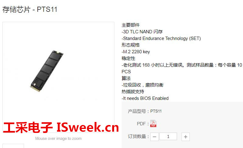 存儲(chǔ)芯片 - PTS11,PTS11系列SSD采用SSD主控和3D NAND Flash技術(shù),搭配??低曌灾餮邪l(fā)的NAND Flash管理軟件,確保讀寫速度和數(shù)據(jù)安全。在產(chǎn)品層面,PTS11系列SSD采用高質(zhì)量的3D NAND Flash,由自動(dòng)化SMT產(chǎn)線生產(chǎn),經(jīng)海康數(shù)據(jù)存儲(chǔ)應(yīng)用標(biāo)準(zhǔn)測(cè)試,確保提供穩(wěn)定服務(wù)。廣泛應(yīng)用于工控行業(yè),為目標(biāo)系統(tǒng)提供穩(wěn)定的服務(wù)。