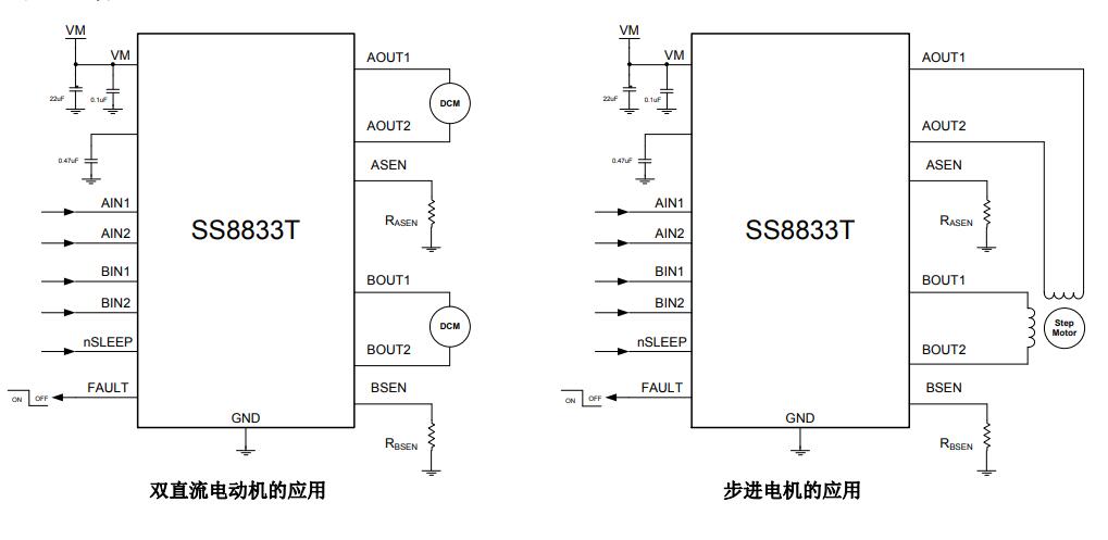 直流有刷電機驅動芯片SS8833T應用電路圖: