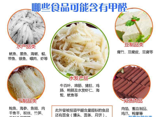 一些不法分子在經濟利益的驅使下,將甲醛作為食品添加劑,如在水性食品中加入甲醛來凝固蛋白質保鮮,改善外觀,增加口感;在酒精飲料中加入甲醛,防止渾濁,增加透明度;用甲醛溶液浸泡過的海參和魷魚;蝦、銀魚、貝類等。體積增大,外觀松脆,并能增加韌性和松脆度。經甲醛處理的水產品不易腐敗變質,保質期大大延長,會造成嚴重的食品污染,損害人體健康?!吨腥A人民共和國食品衛(wèi)生法》中已明文規(guī)定禁止甲醛作為食品添加劑,甲醛污染問題,嚴重威脅著人類健康,引起人們的高度重視。