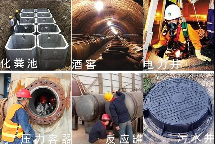 有限空間基本上分為化糞池、酒窖、電力井、壓力容器、反應(yīng)罐、污水井、還有一些密閉設(shè)備如船艙、貯(槽)罐、車載槽罐、反應(yīng)塔(釜)、窯爐、爐膛、 煙道、管道及鍋爐等。