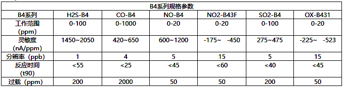 下面是B4系列各氣體類型的參數(shù):