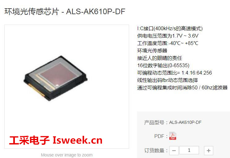 環(huán)境光傳感芯片 - ALS-AK610P-DF的特性: