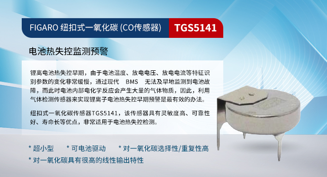 工采網(wǎng)提供一氧化碳傳感器TGS5141,該傳感器具有靈敏度高、可靠性好、壽命長等優(yōu)點(diǎn),非常適用于電池?zé)崾Э貦z測。