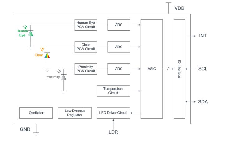 該芯片解決了傳統(tǒng)紅外、超聲波及射頻接近傳感器靈敏度低、響應(yīng)速度慢、可靠性低、功耗大等缺陷,采用了優(yōu)質(zhì)的光學(xué)設(shè)計(jì),使得該接近傳感器體積小,測(cè)量頻次較高,可靠性高,提供了一個(gè)接近人眼反應(yīng)的光譜,可以在黑暗到陽(yáng)光直射下工作;可以檢測(cè)反射紅外光,具有高精度和優(yōu)良的抗擾性。