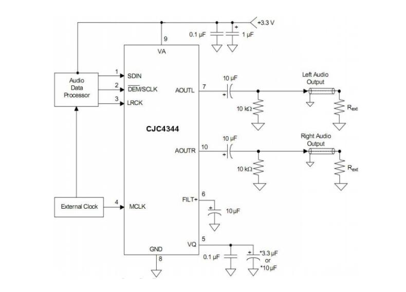 CJC4344含有數(shù)字去加重模塊,可以工作在3.3V 和5V下。這些特性使它成為DVD 播放解碼器、數(shù)字通信設(shè)備等無線設(shè)備的理想選擇。