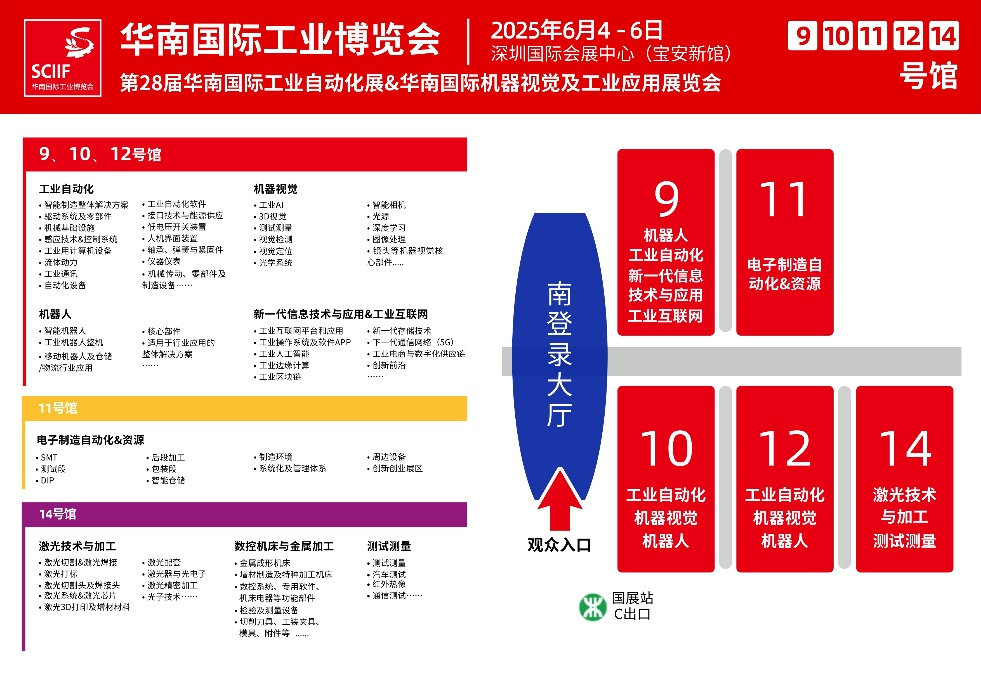 2025年華南工博會將更進一步整合和迭代旗下主題展,帶來包括工業(yè)自動化展、機器視覺展、激光技術(shù)展、數(shù)控機床與金屬加工展、機器人展、新一代信息技術(shù)與應(yīng)用展、工業(yè)互聯(lián)網(wǎng)展、測試測量展、CMM 電子制造自動化&資源展在內(nèi)的八大主題展區(qū),這場工業(yè)盛會將全面覆蓋從原材料到生產(chǎn)設(shè)備到信息技術(shù)再到集成制造,打通智能制造上下游產(chǎn)業(yè)鏈,是一場全且深,專且精的工業(yè)盛會,屆時將吸引超過800 家國內(nèi)外知名企業(yè)帶來最新產(chǎn)品、技術(shù)和解決方案。