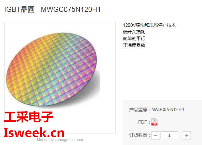 由工采網(wǎng)代理的臺灣茂矽電子推出的IGBT晶圓 - MWGC075N120H1是一款1200V、75A、FS工藝的6寸IGBT晶圓片;1200V壕溝和現(xiàn)場停止技術(shù);低開關(guān)損耗;正溫度系數(shù);簡單的平行技術(shù)。