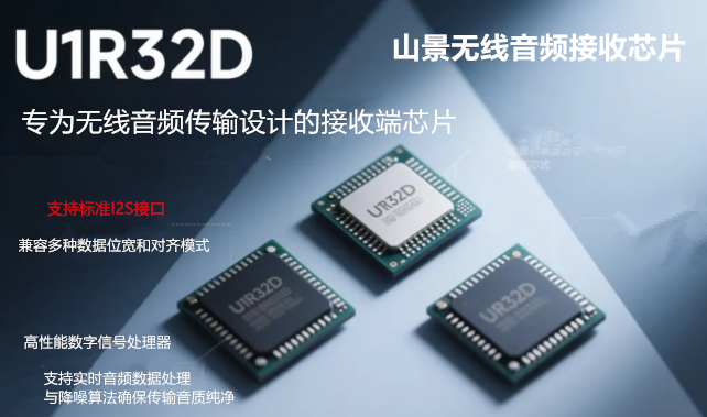U1R32D無(wú)線接收芯片集成了LDO(低壓差線性穩(wěn)壓器)支持3.0V至4.3V的單電源供電,采用QFN32-5x5mm封裝形式,內(nèi)置高性能數(shù)字信號(hào)處理器,支持實(shí)時(shí)音頻數(shù)據(jù)處理與降噪算法,確保傳輸音質(zhì)純凈,支持標(biāo)準(zhǔn)I2S接口,兼容多種數(shù)據(jù)位寬和對(duì)齊模式,支持兩片U1R32D芯片的兩路I2S并聯(lián),提供靈活的音頻處理方案。