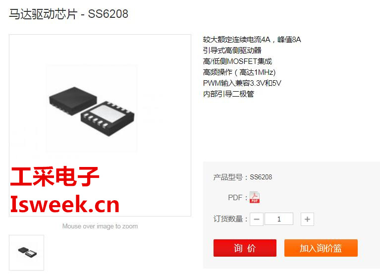 工采網(wǎng)代理的國產(chǎn)電機驅(qū)動芯片 - SS6208,該電機驅(qū)動芯片是集成了一個單相MOSFET驅(qū)動器,高側(cè)MOSFET和低側(cè)MOSFET到一個3mm*3mm8引腳DFN包。與離散組件解決方案相比,SS6208集成解決方案大大減少了封裝寄生效應和板空間。