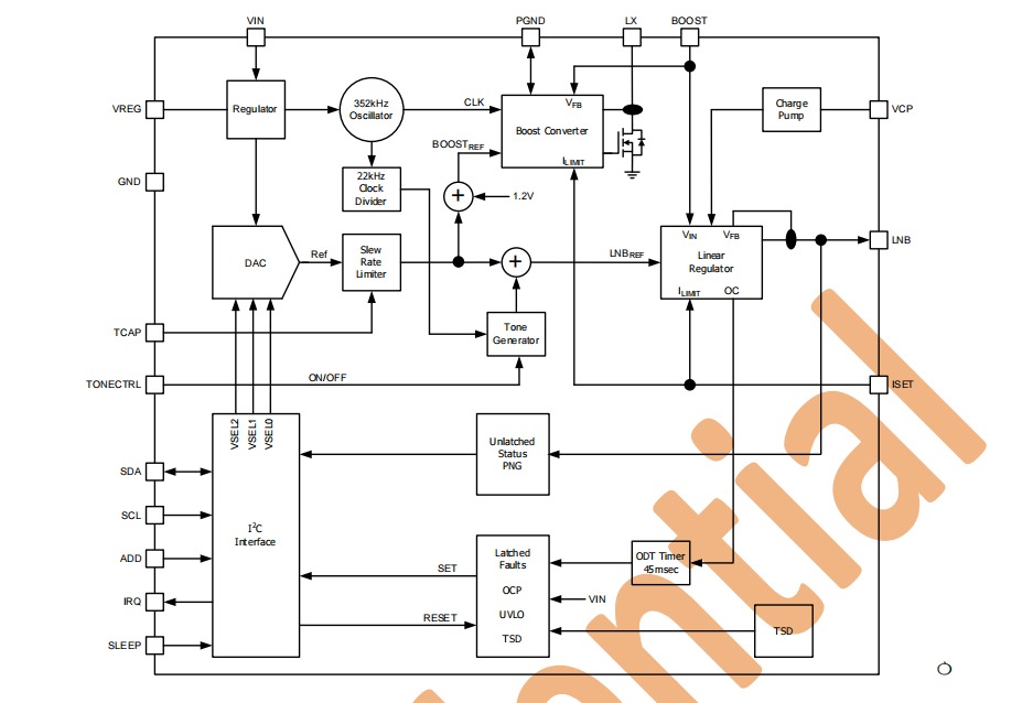 內(nèi)置的22 kHz音調(diào)振蕩器促進(jìn)了DiSEqC?音調(diào)編碼,即使在零負(fù)載