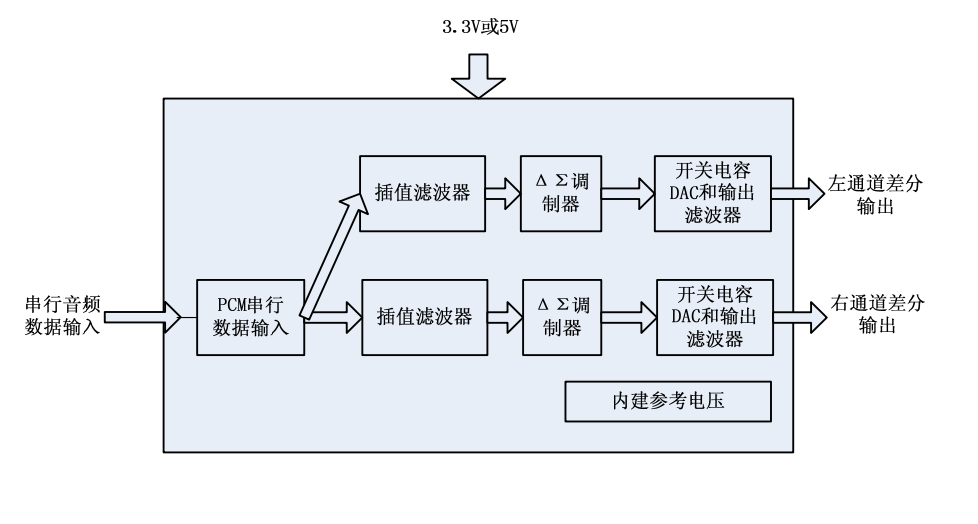 MS5281D接受標(biāo)準(zhǔn)的音頻采樣頻率,包括在QSM模式下的48、44.1、32kHz,在DSM模式下的96、88.2、64kHz,在SSM 模式下的192、176.4、128kHz。音頻數(shù)據(jù)通過(guò)串行輸入數(shù)據(jù)端輸入(SDIN)。左/右通道時(shí)鐘(LRCK)決定當(dāng)前輸入數(shù)據(jù)的通道。串行時(shí)鐘是音頻數(shù)據(jù)進(jìn)入輸入數(shù)據(jù)緩存的時(shí)鐘。
