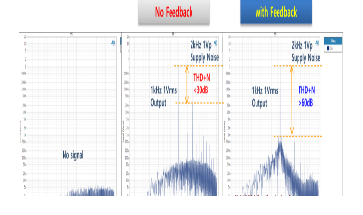 (3)右邊是打開閉環(huán)功能之后,信號與諧波信號的抑制比例達(dá)到60dB(翻一倍);