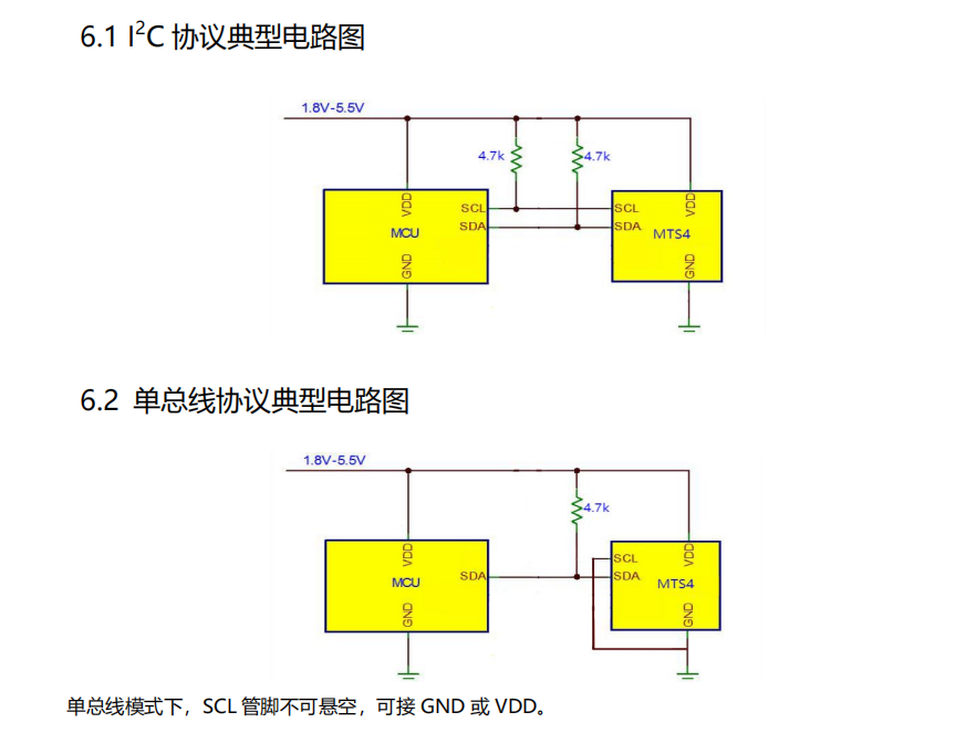 標(biāo)準(zhǔn)I2C接口, 可同時兼容數(shù)字單總線接口