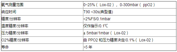 下面是熒光氧氣傳感器 (O2傳感器)LOX-02性能參數(shù):